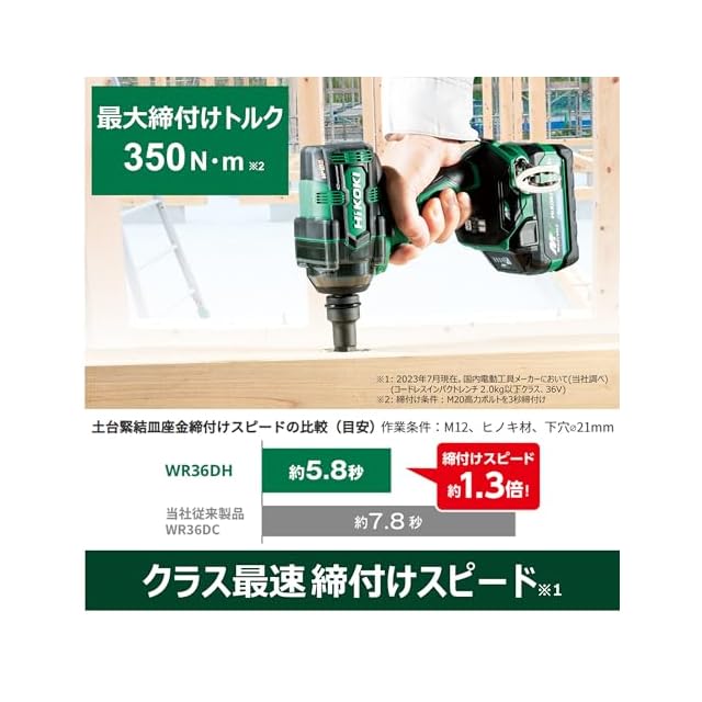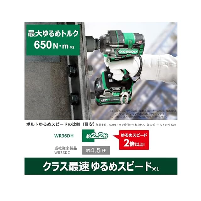 HiKOKI(ハイコーキ) 36V インパクトレンチ WR36DH 最大緩めトルク650N・m 最大締付けトルク350N・m Bluetooth付バッテリー2個・充電器・ケース付 WR36DH(2XPSZ) 【タイヤ交換】