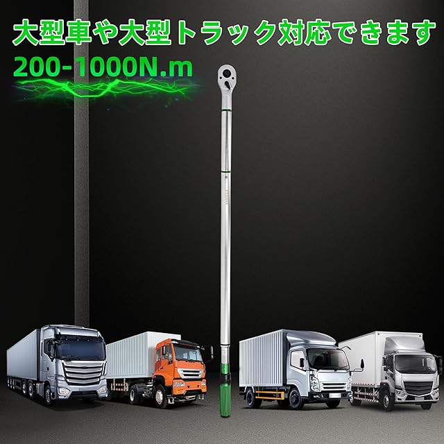【使いやすい大型 自動車用トルクレンチ、幅広い用途】トルクレンチ本体は回転を通して組み立てが完了後、ロックリングを下げてロックが解除されます,次は、ロックリングを下げたまま、グリップを回転して主目盛り値と副目盛り値を設定します,それから、ロックリングを手から離せば、自動に元の位置に戻ります,トルク値が固定されます,トルク設定値に達すると軽いショック「カチッ」という音で知らせてくれます。大型トラックや大型車ばかりでなく、産業工場での組立作業,一般産業機器およびプラントのメンテナンス作業にも大活躍です