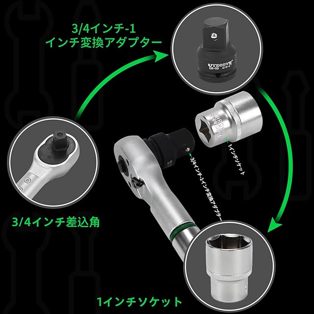 【梱包内容、左右回転、快速着脱】このトルクレンチセットは3/4インチから1インチまで変換アダプター付きなので、実用性があります。高トルクトルクレンチ本体は約122cm、長いトルクレンチですが,本体が回転を通して2部分に分解できます、持ち運びやすい収納ケースもありますので、収納性や携帯性があります,車載工具としても問題がありません,大型車用トルクレンチとして大丈夫です。右回転や左回転も対応できます,両回転トルクレンチです。ボタンを押すと、ソケットを快速に着脱できます
