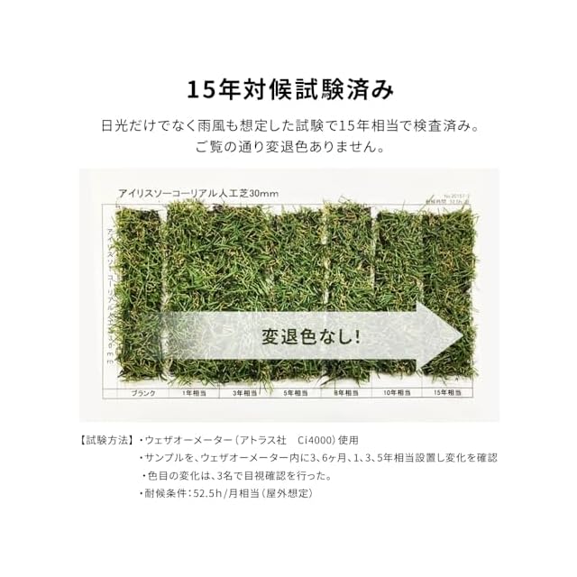 ハリ・コシがあり、クッション性に優れているので、お子さまやペットの遊び場・ドッグランにもおすすめ!ベランダに敷くだけで明るい雰囲気に!またカーペットやインテリアグリーンとしても。
