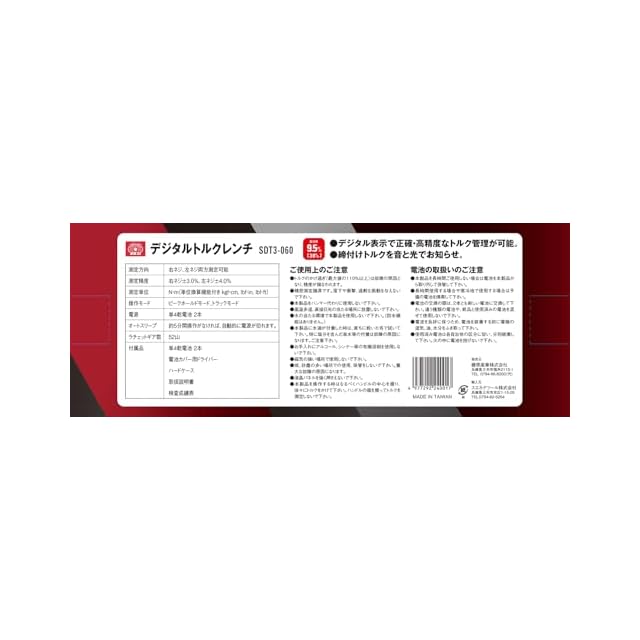 測定精度:右ネジ±3%・左ネジ±4%、測定単位:N・m(単位換算機能付きkgf・cm、lbf・in、lbf・ft)