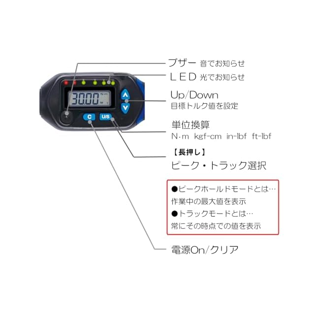 測定単位:N・m(単位換算機能付きkgf・cm、lbf・in、lbf・ft)