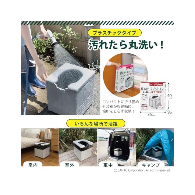 防災、災害、工事現場、アウトドア、介護用などいろんな場面で活躍。洋式トイレ以外にも簡易トイレやバケツ、段ボールなどにかぶせても使用できます。