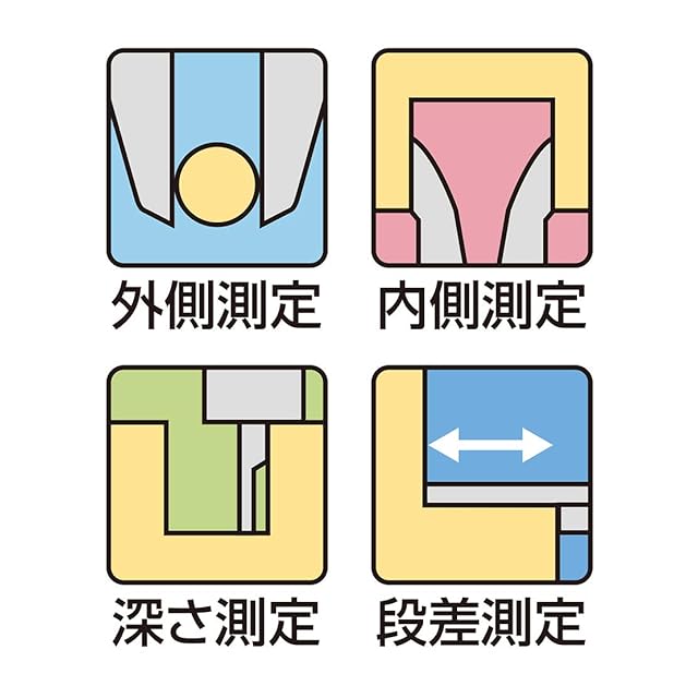 外側測定、内側測定、深さ測定、段差測定、比較測定、間接測定と幅広く使用できます。