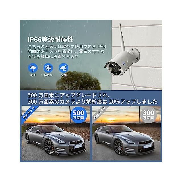 【500万画素】ワイヤレス防犯カメラセット Hiseeu 屋外セキュリティカメラ 10.1イン NVR 10チャンネルまで増設可 カメラ4台 カメラ 遠隔監視 防水等級ip66 動態検知 屋内/屋外 防犯カメラ (カメラ4台+8チャンネル録画機+1TB HDD)