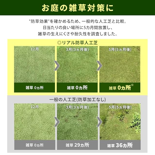 雑草対策の新常識。「敷くだけ」で雑草が生えない人工芝です。