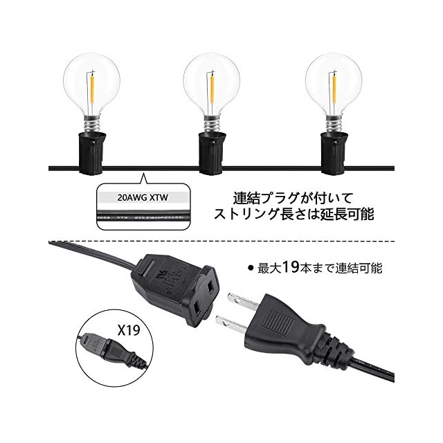『延長可能』:付きの連結プラグには長さ延長できます。弊社のストリングライトは2つの電球を追加配送しましたので、使いやすいです。