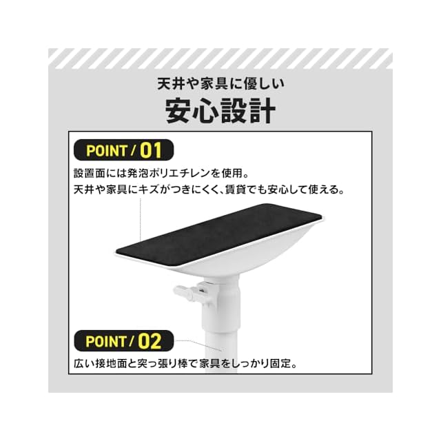 天井や家具を傷つけず、しっかり固定。