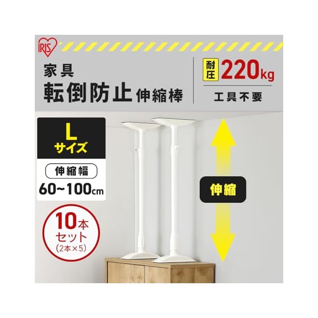 【10本セット】アイリスオーヤマ 転倒防止 突っ張り棒 転倒防止棒 転倒防止器具 転倒防止用突っ張り棒 転倒防止 家具転倒防止伸縮棒Lサイズ ホワイト KTB-60R 突っ張り棒 強力 伸縮棒 防災用品 転倒防止棒 防災グッズ 地震対策 耐圧約220kg Lサイズ | つむぎ屋