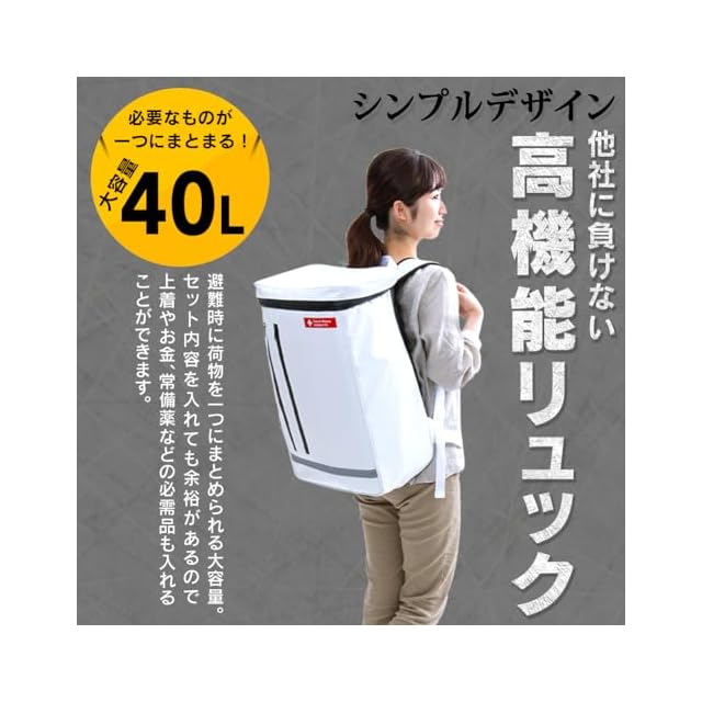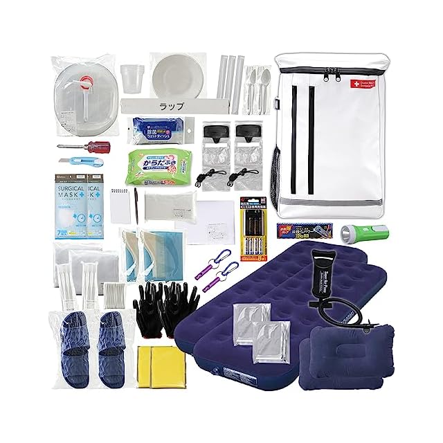 【防災士監修】 アイリスオーヤマ(IRIS OHYAMA) 防災グッズ 防災リュック 防災セット 2人用 44点 充実セット エアベッド 簡易トイレ 懐中電灯 ウォータータンク 撥水加工 ホワイト BS244 | つむぎ屋