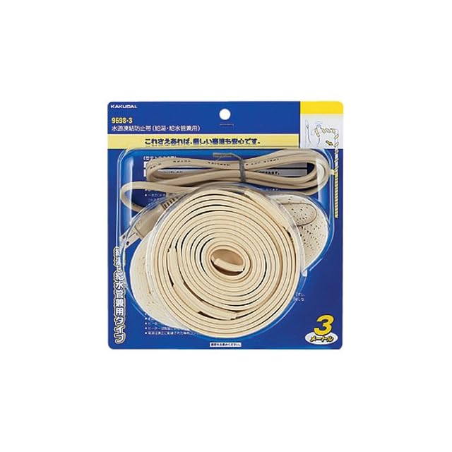 機能:水道管の温度が約3度まで下がると通電し、約10度になると通電を停止する