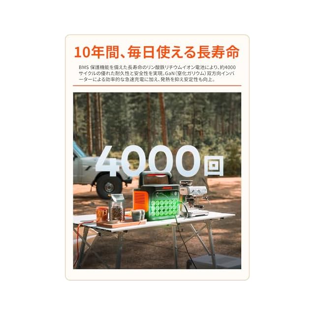 【定格出力1500W、容量1070Wh】60万人に選ばれたJackery大人気1000モデルの後機器、コーヒーメーカー(1120W)、ポータブルエアコン(1000W)、電子レンジ(960W)、ケトル(850W) などの家電製品にも対応できます。ドライブ、キャンプ、家族旅行、非常用、防災用に多用途。