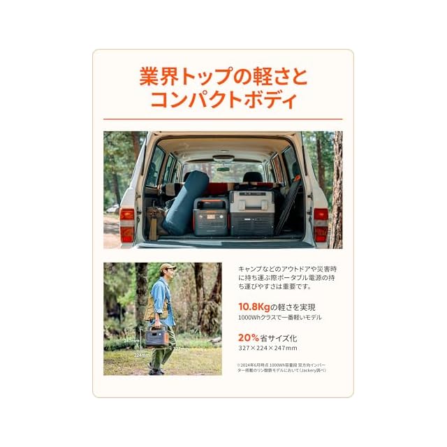 Jackery (ジャクリ) ポータブル電源 1000 New 1070Wh 業界トップの軽さとコンパクトボディ 1時間満充電 リン酸鉄 10年長寿命 定格出力1500W 瞬間最大3000W 防災 家庭用 アウトドア用 車中泊 UPS機能 アプリ遠隔操作 純正弦波 AC100V 50Hz/60Hz対応