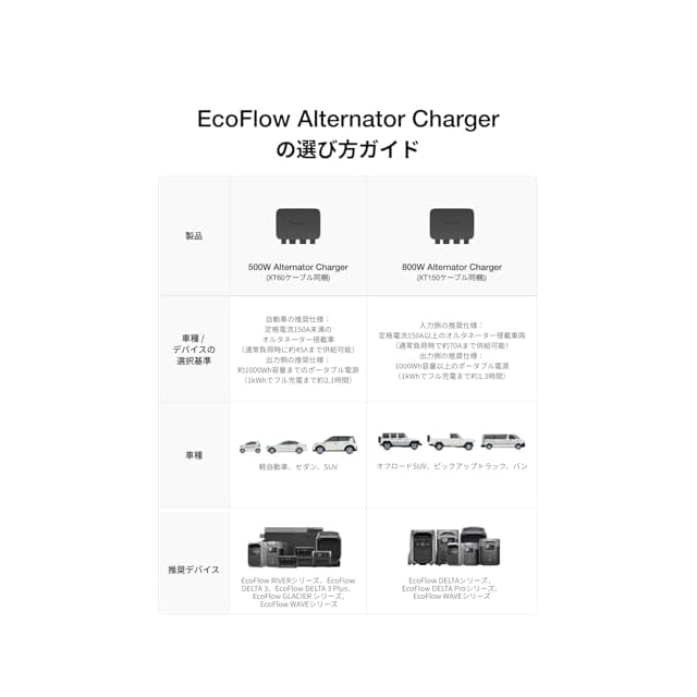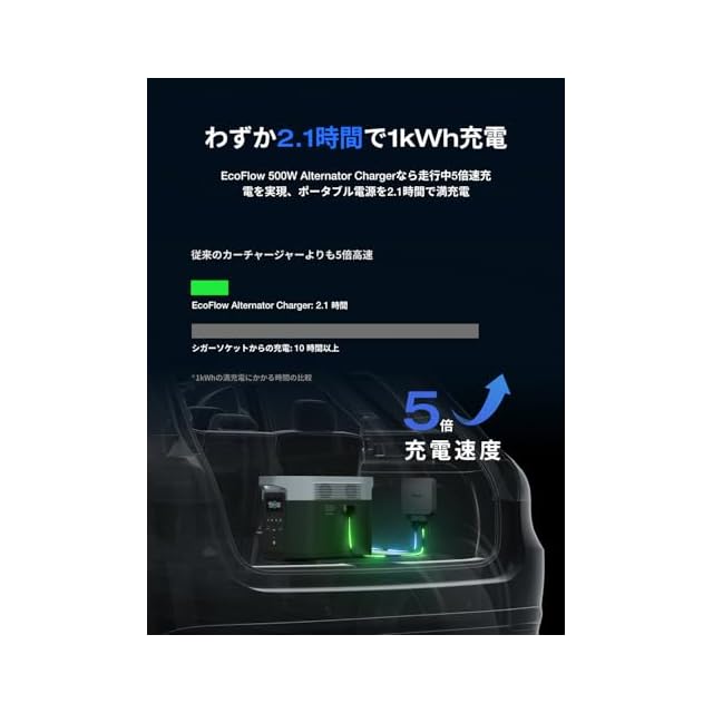 EcoFlow 500W Alternator Charger オルタネーターチャージャー 走行充電器 ポータブル電源チャージャー 他社のポータブル電源適用 エコフロー 500W高出力 2.1時間で1000Wh急速充電 3つモード備え 取付簡単 過熱保護