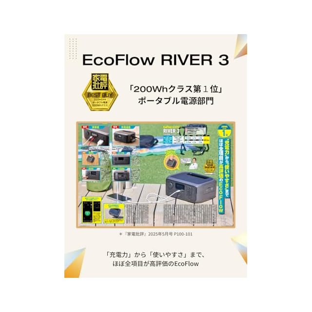 EcoFlow ポータブル電源 小型 RIVER 3 230Wh GaN採用 リン酸鉄リチウム ぽーたぶる電源 静音設計 UPS機能 AC定格300W /サージ600W スマホ タブレット充電用 モバイルバッテリー キャンプ アウトドア 停電対策 防災グッズ (エコフロー リバー3)