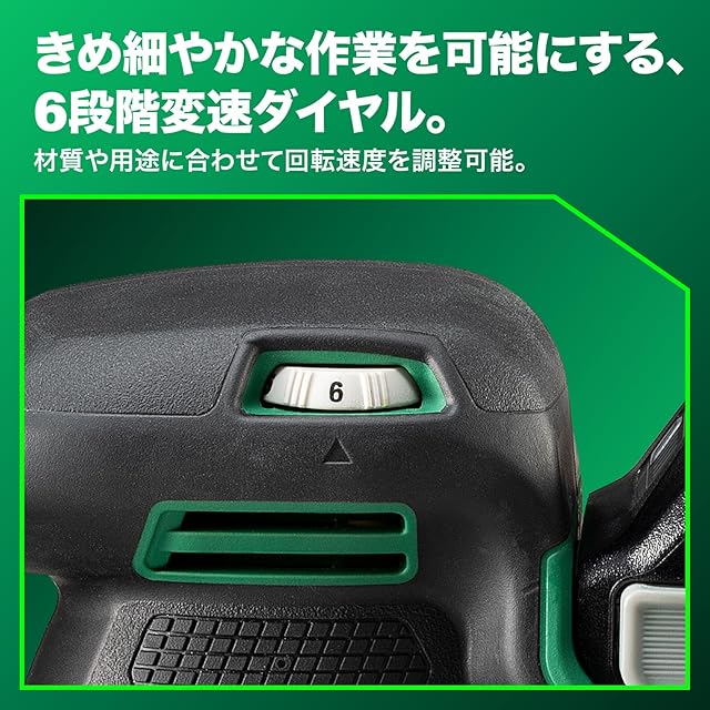 6段階変速ダイヤルで材質や用途に合わせた作業が行えます。研磨作業やさび落とし、塗装剥がし等の作業で活躍します。