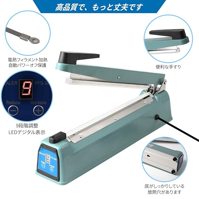 商品名:Chamomile1011 30cmシーラー卓上 シーラ シール LED鏡面表示 を備えており9 段階調整交換用ヒーター線付き*4
