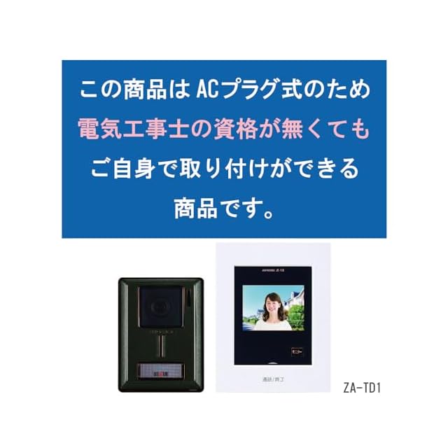 アイホン ドアホン インターホン カメラ付き玄関子機 モニター付き親機 わかりやすい画面表示 カメラレンズ調整可能 AC電源プラグ式 有線 無線 ZA-TD1
