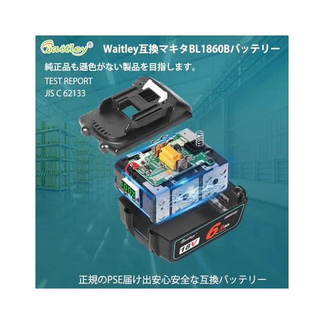 商品名:waitleyマキタ BL1830 6.0Ah互換 バッテリー 2個セット 18Vバッテリー デジタル%残量指示付き 容量6000mAh BL1830 BL1840 BL1850 BL1890 対応 マキタ18V電動工具用電池 リチウムイオンバッテリー