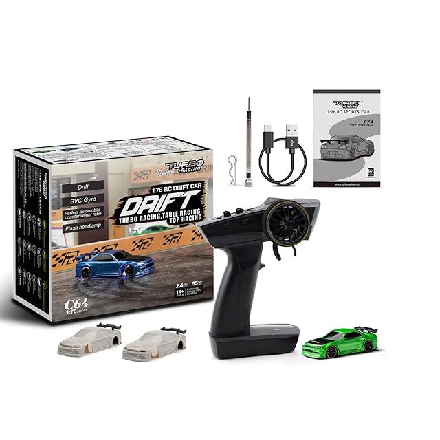 Turbo Racing C64 1:76ドリフトカー ターボレーシング 1/76ミニRCカー 30分連続稼働 ドリフト走行 2.4GHz技適認証済み 比例制御 ジャイロ付き 車おもちゃ フルセット | つむぎ屋