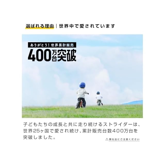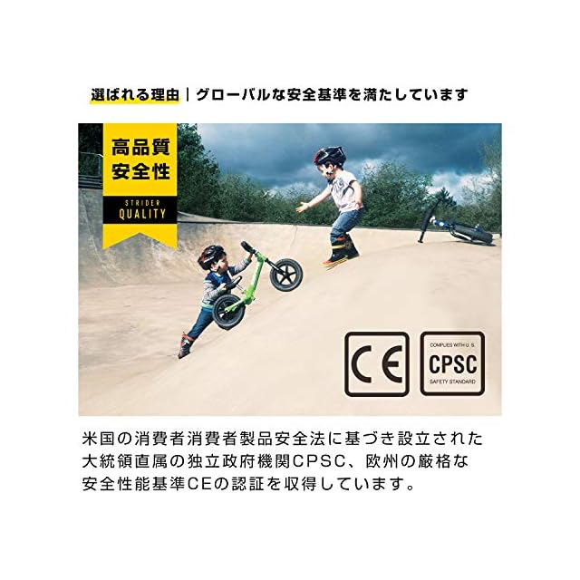 説明:クッションシート、ハンドルバーパット、フットレストが標準装備の12インチモデルのストライダーです。