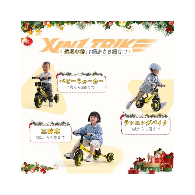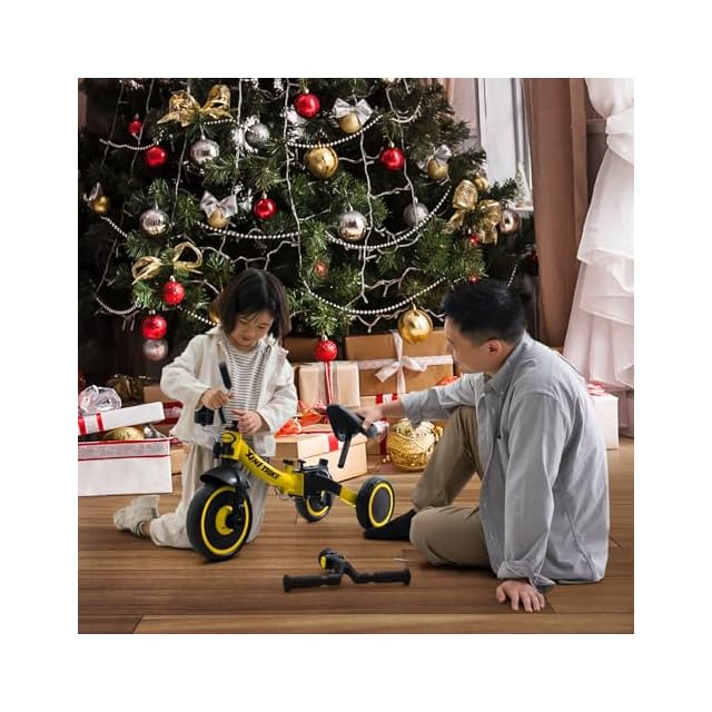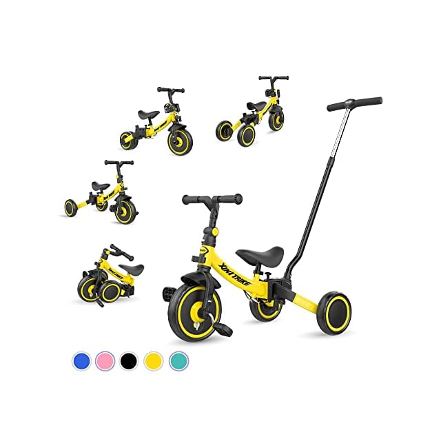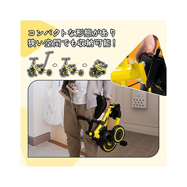 besrey 子供用三輪車 XIN1 三輪車 かじとり ランニングバイク ベビーカー 手押し棒 1歳から5歳まで 折りたたみ 軽量 ハンドル 調整可能 誕生日プレゼント お祝いギフト イエロー | つむぎ屋