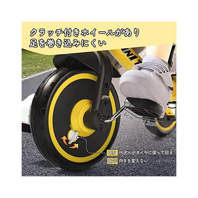「特殊の車輪」前輪はクラッチがあるので、走行中子供たちの足を守ります。ロックの状態で巻き込まれにくくて、心配しなくてもいいです。強いレジリエンスと環境保護材料を使って、一般より直径が大きいです。