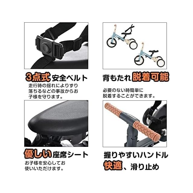 【3点式安全ベルト】安定した三角構造で、お子様の安全を確保し、安全な乗車ができるように設計されています。