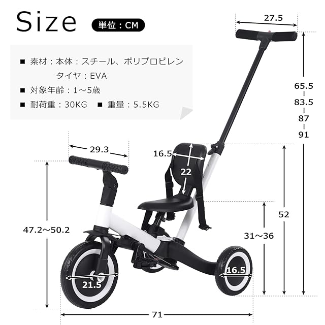 【ハンドル&サドル調整可能】ハンドルの角度調節ができ、子供の成長に合わせて使用できます。 お子様の成長に応じて、ハンドルは上下階調節ができます。