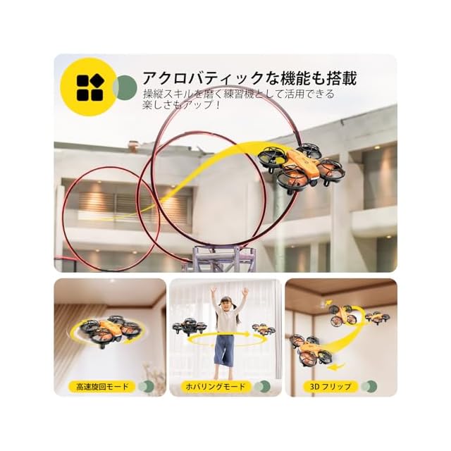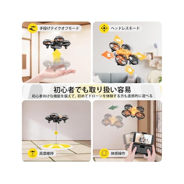 【初心者に優しい多機能機】手投げテイクオフモード、ヘッドレスモード、高度維持など初心者向け機能が搭載され、初めてドローンを体験する方も直感的に操縦可能です。そのほか、高速旋回モード、ホバリングモードなどのアクロバティックな機能も備えて、初心者に対し、操縦スキルを磨くことができるとともに、ドローンを操縦する楽しみも倍増!