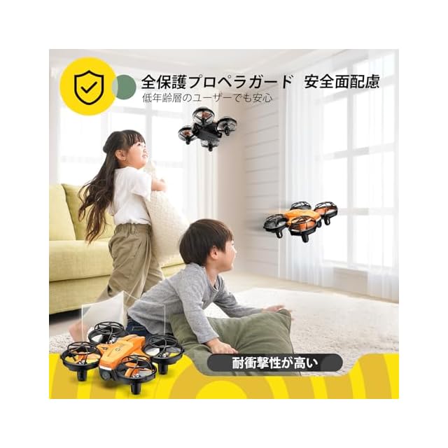 【全保護プロペラガード】プロペラの周りに全保護プロペラガードが設置されているので、手とプロペラの接触を防ぐことができます。耐衝撃性が高いとともに、低年齢層の初心者ユーザーでも安心に利用できます。