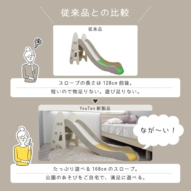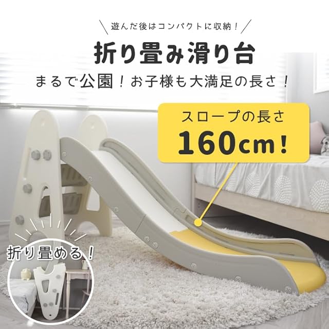 YouTen(ユーテン) すべり台 ロング 160cm 室内 室内用 折りたたみすべり台 スライダー キッズスライダー ロングスライダー 室内遊具 おもちゃ 簡単組立 コンパクト 遊具 クリスマス 折りたたみ すべりだい キッズ 滑り台 折り畳み おもちゃ 子供用 子ども おしゃれ (クリームイエロー) | つむぎ屋