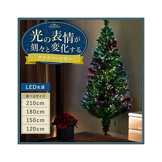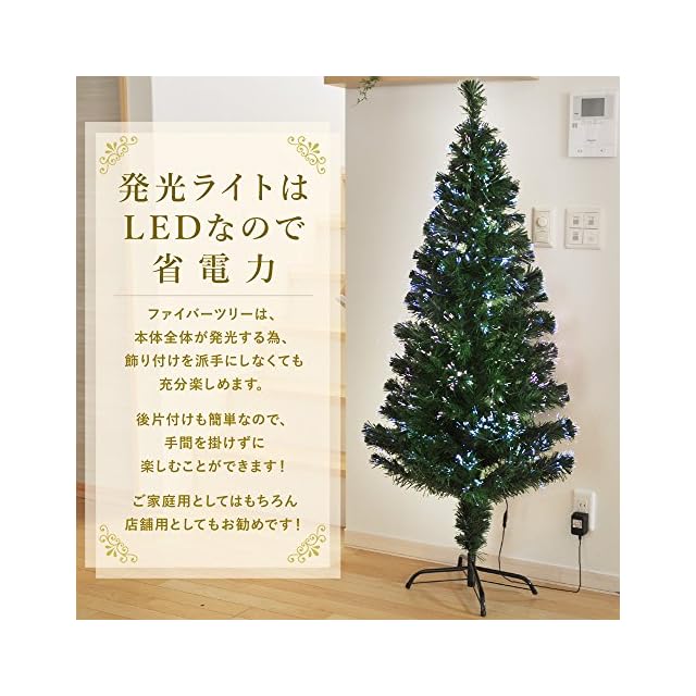 life_mart クリスマスツリー ファイバーツリー 【 選べる5サイズ 90 120 150 180 210 簡単組立 】 光ファイバー イルミネーション 高輝 (グリーン, 120cm)