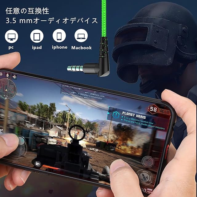 【人間工学デザイン&L型プラグ】有線ゲームイヤフォンは人間工学に基づき45°傾斜型デザインにより、耳にしっかりフィットするので外れにくいです。柔軟な素材ですので長時間つけることによる耳や頭の痛みを軽減し快適にご使用になれます。イヤホンは密閉型で音による体感を高めることができます。また、ゲーミングヘッドセット特有の重さや暑さを取り除くことができます。スマホでゲームする際も、L型プラグで手の動きを妨げることはありません。ゲームをより快適に楽しむ事ができます。