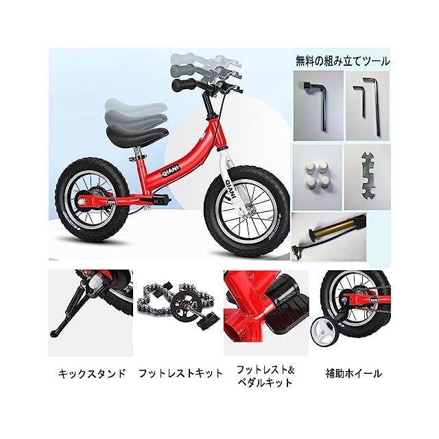 【インストールが簡単です】この子供用自転車の95%の部分はすでに取り付けられました,踏み板と取っ手と座椅の取り付けだけが必要です,小包の中には全部の取り付け道具と小型の空 気入れと設置説明書があります。