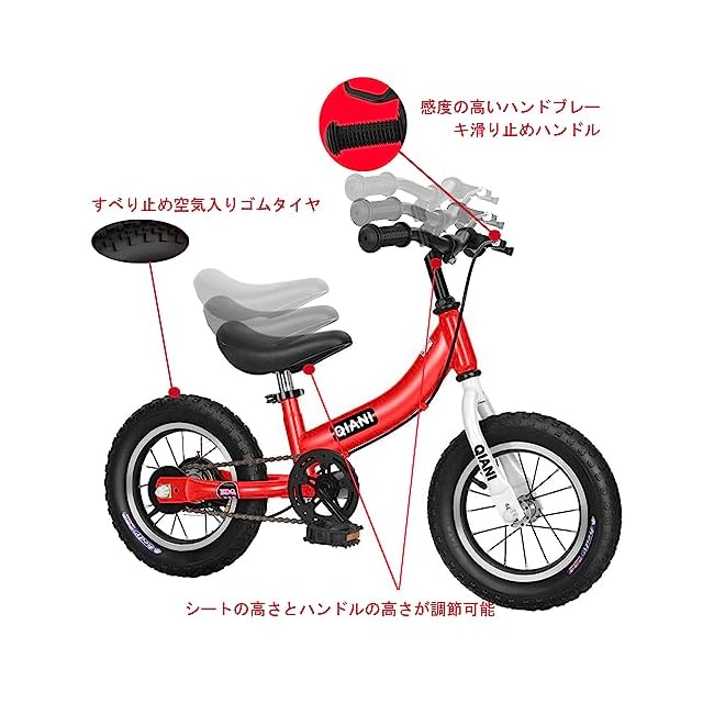 【頑丈な車の枠】自転車のフレームは、統合された高炭素鋼フレームを使用しています,自転車の車体はとても丈夫で丈夫です, 耐震性が強い。ハンドブレーキがとても鋭い,緊急の場 合は直ちに子供の安全を守ることができる。座席の調節ができます: 自転車の座席は子供の身長に合わせて自由に調整できます。空気入れタイヤ:幅の広い、磨耗に耐える、防爆空気ゴ ムのタイヤ。