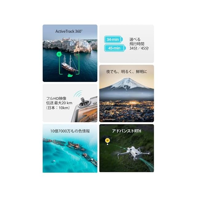 ✅[最大20 km(日本では10 km)のフルHD映像伝送で、空撮映像をリアルタイムで楽しもう [2]] - 都市の信号干渉や森林の遮蔽といった環境においても、信号はより安定して信頼性があります。長距離の飛行と高品質の映像伝送を両立し、低遅延の映像伝送でリアルタイムに空撮映像を確認できます。これまで以上に臨場感溢れる飛行を体験しましょう。
