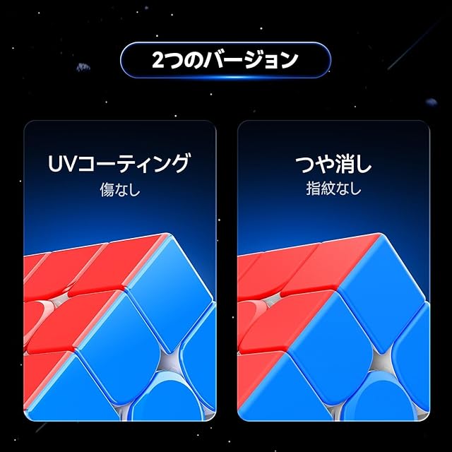 【UVコートモデル】キューブの表面にはUVコーティングが施されており、これにより摩耗や傷から保護する事ができ、手汗や湿気の影響を受けにくくなり、より正確な操作を実現できます。