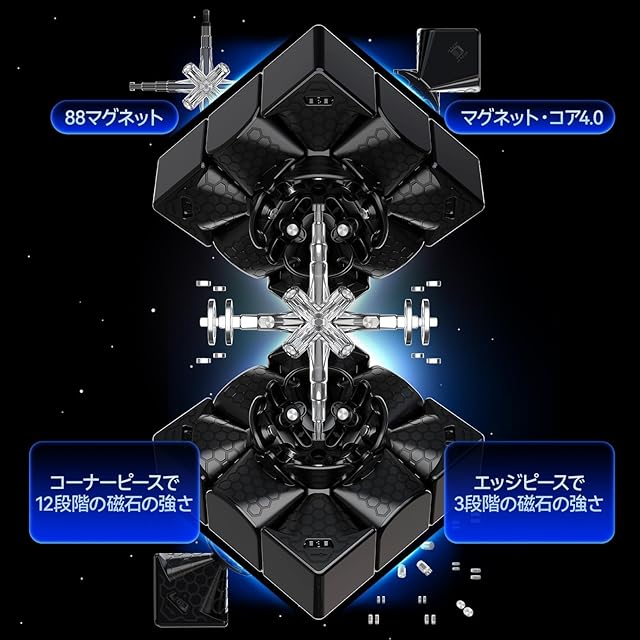 【磁石の強さを完全に調整】コーナーとセンターに限らず、エッジまで磁石の強度を3段階で調整可能です。 摩擦抵抗をコントロールし、キュービングの領域はますます進化します。