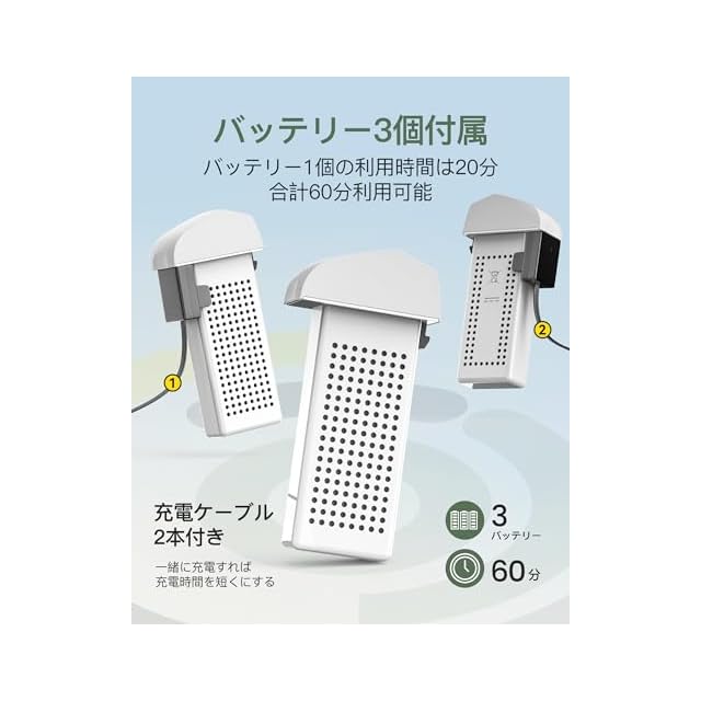 【パッケージリスト】本体*1 ;2.4G送信機*1 ;バッテリー*3; バッテリー充電ケーブル*2 ;予備プロペラ*2 ;プロペラガード*4; 収納ケース*1 ;送信機充電ケーブル*1