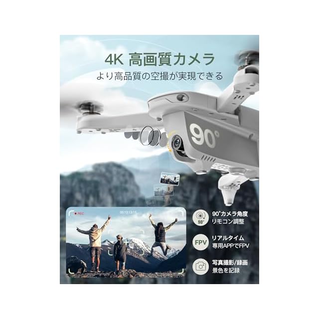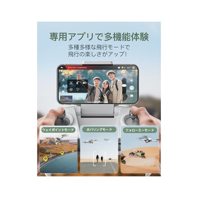 【アプリで多機能操縦可能】機体WIFIと接続している場合、フォローミーモード 、ウェイポイントモード、ホバリングモードなど、アプリでプロのように多機能飛行モードを楽しむことができます。
