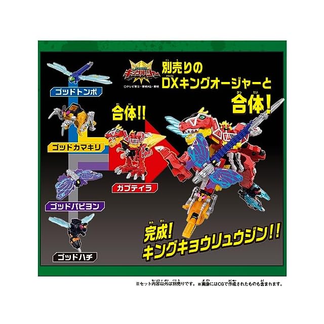 さらに別売りのDXキングオージャーと合体することで、迫力あるキングキョウリュウジンが完成します。