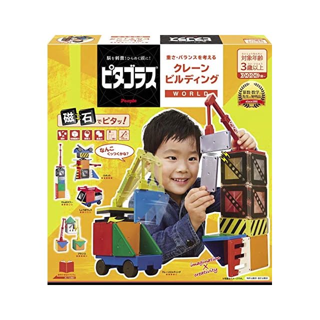 【脳を刺激! ひらめく頭に! ピタゴラス(R)】 平面から立体へ。空間認識力を育てる知育玩具。算数・数学の先生の発明品。クレーンが伸びる&動かせる。磁石の力で工事現場をつくりながら、「重さ・バランス」を考えることができます。