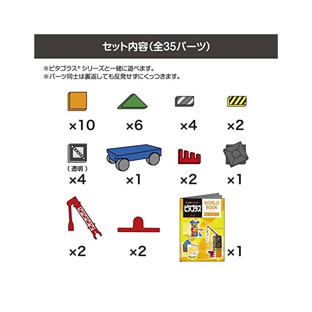 【対象年齢】3歳以上、【セット内容】7 種34パーツ+あそび・まなびブック、【パッケージサイズ】W280×D60×H300mm