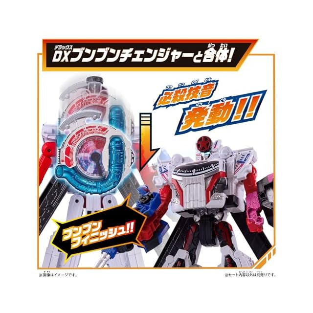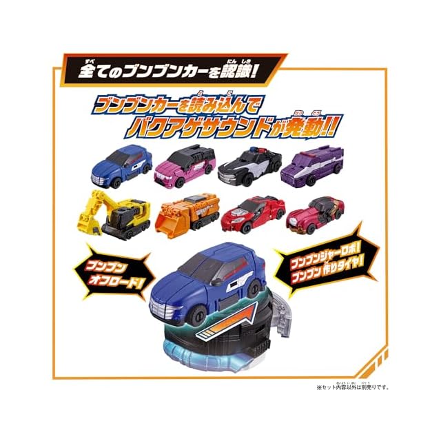 「DXブンブンチェンジャー」「DXブンブンジャーロボ」に、劇中に登場する「ブンブンスーパーカー(バクアゲモードVer.)」が同梱された初回限定のセットです。