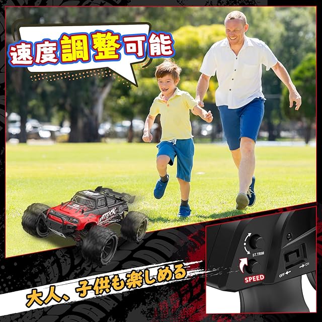 【充電式バッテリー&2.4Ghz制御システム】このラジコンカーには7.4V 1500mAhの大容量充電式バッテリーが搭載されています。より長い駆動時間と途切れることのない楽しみが得られます。干渉防止2.4Ghz制御システムにより、複数のRCトラックを一緒に走らせたり、レースをしたり、友人や家族と絆を深めたりすることができます。