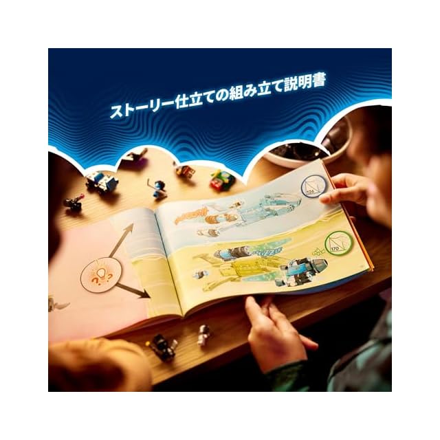 頼もしい助っ人 – 紙の組み立て説明書やLEGO Builderアプリを見ながら、ストーリー仕立ての組み立て遊びを楽しめます