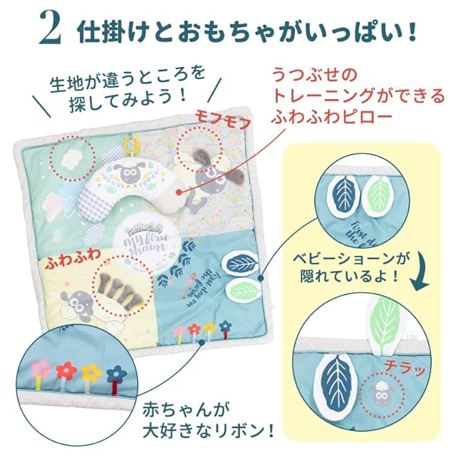 ショーンのイラストがはいったピローで腹ばい時期のお子さまをサポート。