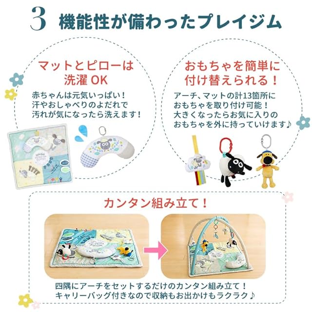 商品名:日本育児 プレイジム ベビーマット ひつじのショーン 3way アクティビティプレイジム 1個