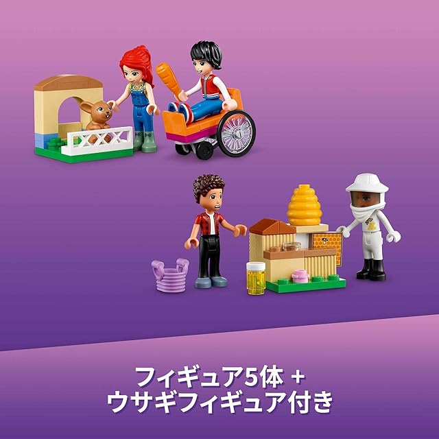 アイテム満載 – 表情を変えられるミアとリバーのミニドールや、ウサギのフィギュアなどのキャラクター5種類、配達用バイク、ハチの巣箱、大工道具が付属しています。